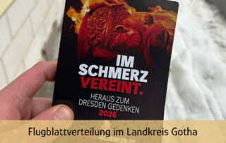 Am Freitag, den 05.12.2025, verteilten Aktivisten des Kreisverbandes Gotha unserer Partei hunderte Flugblätter in Waltershausen. Mit dem Flugblatt „Thüringen braucht Dich! Werde Teil der Sammlungsbewegung“ erinnerten wir unsere Landsleute an über 55 Jahre heimattreue Politik, die unsere Partei in Thüringen und anderswo verfolgt. Wir rufen alle deutschen Landsleute aus dem Landkreis Gotha sowie [...]